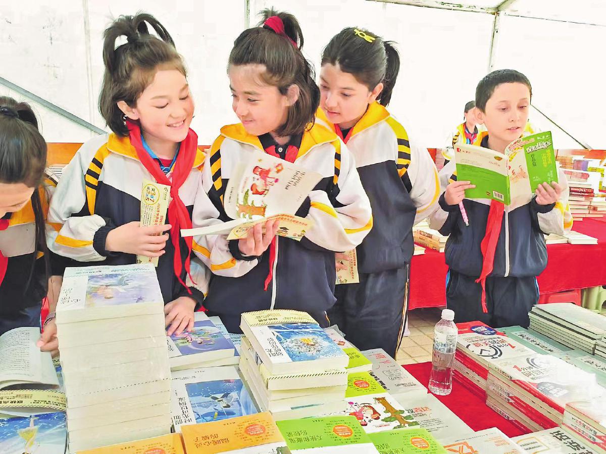 近日,由新疆維吾爾自治區(qū)喀什市委宣傳部、市教育局牽頭,喀什地區(qū)郵政分公司承辦的“閱讀新時(shí)代·喀什向未來”圖書贈(zèng)閱惠民活動(dòng)啟動(dòng)儀式在喀什市第十一小學(xué)舉行。喀什地區(qū)分公司捐贈(zèng)了價(jià)值6萬元的圖書和價(jià)值80萬元的圖書優(yōu)惠券,并現(xiàn)場(chǎng)進(jìn)行圖書展銷,進(jìn)一步豐富學(xué)校圖書閱覽室藏書,培養(yǎng)學(xué)生良好的閱讀習(xí)慣,讓他們?cè)谧x書中獲得更多知識(shí),健康快樂地成長。圖為喀什市第十一小學(xué)的學(xué)生徜徉在書海中。