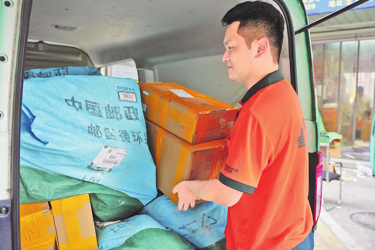 郵政人員攬收新疆路向郵件后,第一時(shí)間發(fā)往處理中心,讓郵件搭乘專線盡快抵達(dá)新疆。