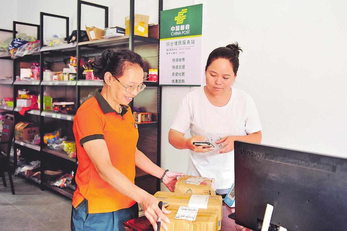 “以前我們?nèi)】爝f都要去鎮(zhèn)上,現(xiàn)在郵政把站點(diǎn)建到了我們村里,所有快遞在家門口就可以直接取,大大節(jié)省了時(shí)間。有時(shí)候在外地工作的家人想吃點(diǎn)兒家鄉(xiāng)土特產(chǎn),也可以通過(guò)服務(wù)點(diǎn)馬上寄出去,大大方便了我們!”9月15日,村民李美英走進(jìn)湖南省湘西土家族苗族自治州花垣縣龍?zhí)洞遴]政綜合服務(wù)站點(diǎn)取快遞時(shí),樂(lè)呵呵地說(shuō)。