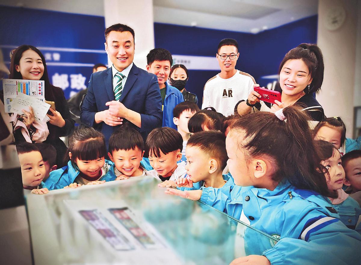 近日,江蘇省沛縣郵政分公司聯(lián)合當(dāng)?shù)赜變簣@開展“童心探秘之走進(jìn)郵局”主題活動(dòng)。在活動(dòng)中,郵政工作人員帶領(lǐng)小朋友參觀郵政服務(wù)和生產(chǎn)場地,向他們講解郵政業(yè)務(wù)和郵票的知識(shí)及文化內(nèi)涵。孩子們還體驗(yàn)了寫信寄信的過程,在信封的指定位置貼上郵票,并將信件投入郵筒中,接受了一次書信文化的熏陶。