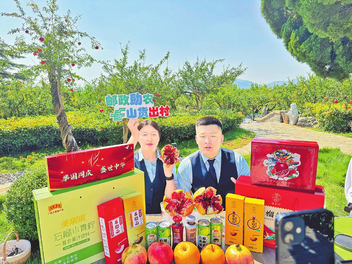 棗莊郵政在石榴園進(jìn)行助農(nóng)直播?!醭谭啤z