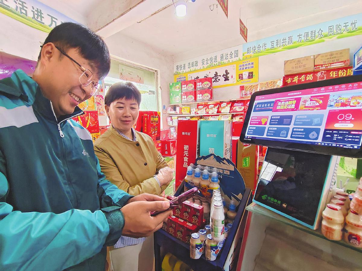 郵政地推人員開展常態(tài)化巡店工作。□范源 攝