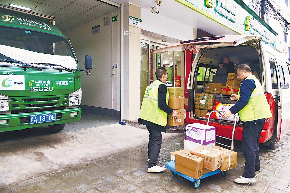 一路翻山越嶺,王緒平駕車行駛在蜿蜒的山路上,神情專注,直到將車開進通城鎮(zhèn)寄遞物流共配中心。“這些農產品都是寄往外省的,一會兒再由郵車轉運至巫溪縣寄遞物流共配中心。”王緒平一邊與工作人員交接郵件,一邊介紹著“郵運通”帶來的變化,“蘭英鄉(xiāng)海拔高、土質好,當地很多老百姓以種植中藥材為生。以往都是靠藥材商上門收購,或是村民自己坐車進城賣,費用高不說,還總被壓價?,F在通過郵政就能發(fā)快遞,大家也開始學著開網店賣藥材,收入是過去的好幾倍!”