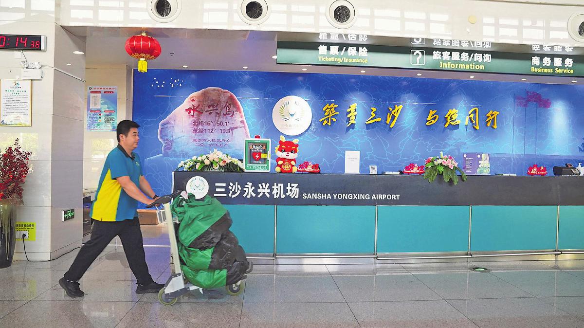 2024年12月27日8時32分,隨著海南三沙公務(wù)包機(jī)HU7071航班的順利起飛,其搭載的EMS特快郵件被送往三沙永興機(jī)場。40分鐘后,飛機(jī)平穩(wěn)降落。隨后,三沙郵政駐永興島工作人員在10時10分提取郵件,并立即進(jìn)行分揀和投遞。三沙航空郵路在延續(xù)原有報刊運(yùn)送服務(wù)的基礎(chǔ)上,新增EMS特快專遞郵件運(yùn)送,為駐永興島黨政部門和軍民提供了更加多樣化和便捷化的郵政服務(wù)。2025年,三沙郵政將進(jìn)一步提升服務(wù)水平,為建設(shè)美麗三沙貢獻(xiàn)更大力量。圖為三沙郵政駐永興島工作人員在永興機(jī)場提取郵件。