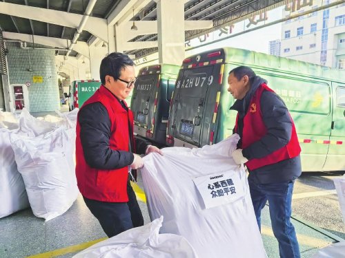 當(dāng)天下午2點,一輛裝滿捐贈物資的運輸車駛?cè)胧捝洁]政作業(yè)場地。為了第一時間將物資發(fā)往西藏,蕭山郵政組織黨員成立先鋒隊,露天作業(yè),爭分奪秒,從卸貨、稱重、收寄、貼單到裝車一氣呵成,將3532件羽絨服、65包物資快速收寄完畢,發(fā)往西藏日喀則市紅十字會。