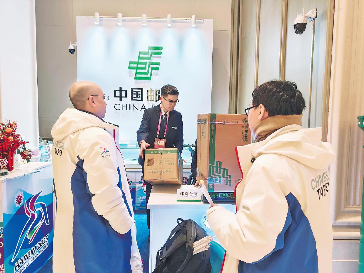 亞布力賽區(qū)郵政投遞專員為運(yùn)動(dòng)員投送郵件。□倪世雄 攝
