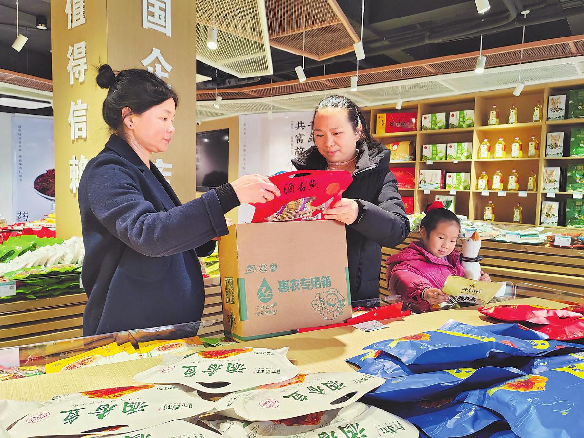 正月初二的千島農(nóng)品旗艦店人頭攢動,因其緊鄰千島湖鎮(zhèn)中心湖區(qū)旅游碼頭,優(yōu)越的地理位置加上郵政央企品牌的加持,成了春節(jié)期間游客購買旅游特產(chǎn)的不二之選。