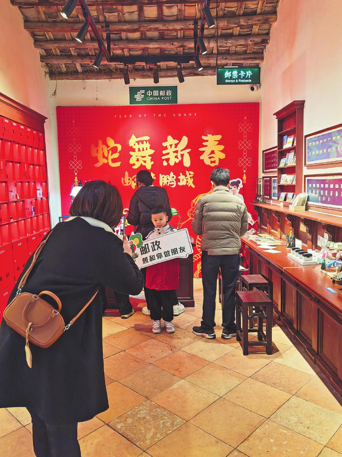充滿年味的時(shí)光郵亭成為游客打卡留念的熱門地點(diǎn)?!趵顐| 攝
