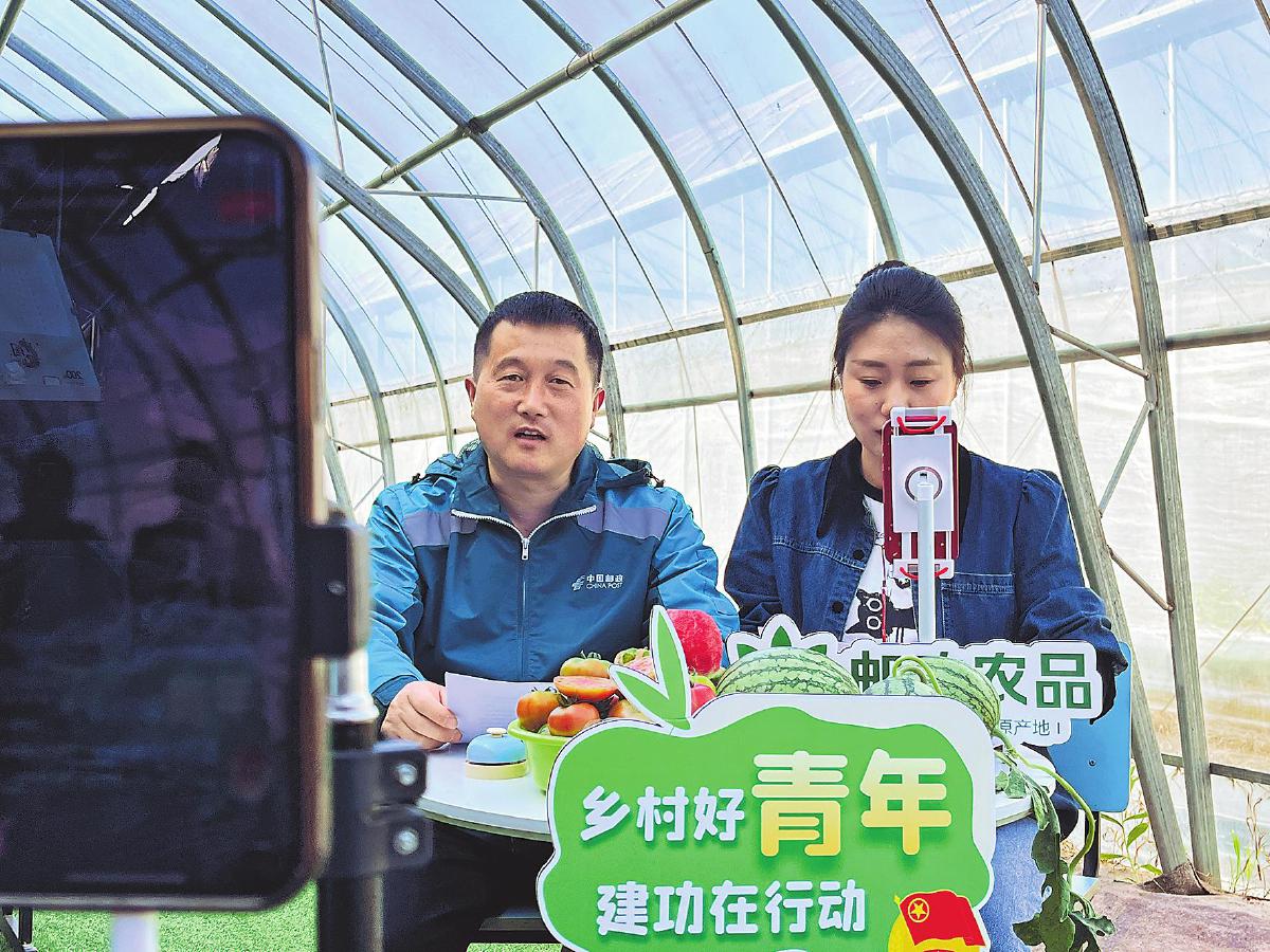 連云港市郵政分公司開展直播活動,主推“灌云果蔬”基地農(nóng)產(chǎn)品。