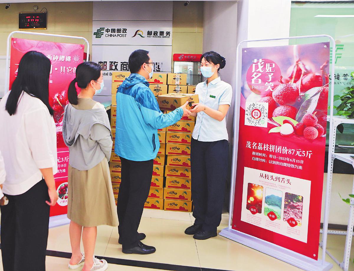 江蘇郵政與廣東郵政茂名荔枝基地合作,開展網(wǎng)點拼團活動。