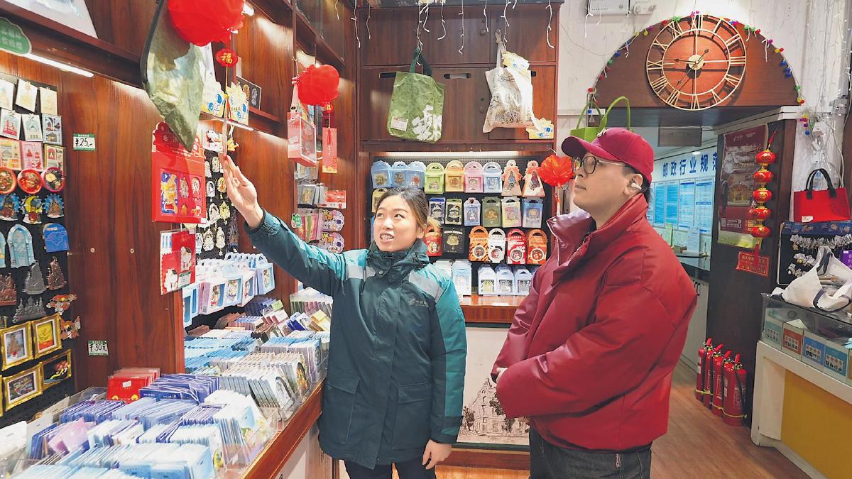 主題郵局里,帶有亞冬會標志和哈爾濱冰雪特色的明信片、郵票以及精美的紀念郵戳等吸引了眾多游客觀賞和購買。大家紛紛與亞冬會吉祥物、主題郵局里的冰雪元素合影留念,并在明信片上寫下元宵節(jié)的祝福語和對亞冬會的期許,留存下美好的時刻。