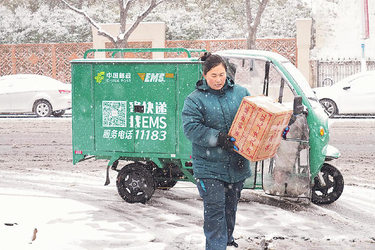 “她”力量是勇敢與堅(jiān)韌。近日,河南迎來(lái)了“桃花雪”,面對(duì)投遞路上的困難,河南省商丘市郊區(qū)郵政分公司南京東路攬投部投遞員李長(zhǎng)娥,冒著凜冽寒風(fēng)與紛飛雪花,將快遞包裹按時(shí)送到客戶手中。她的身影也成為雪天里一道令人動(dòng)容的“風(fēng)景”。□何水清 攝影報(bào)道