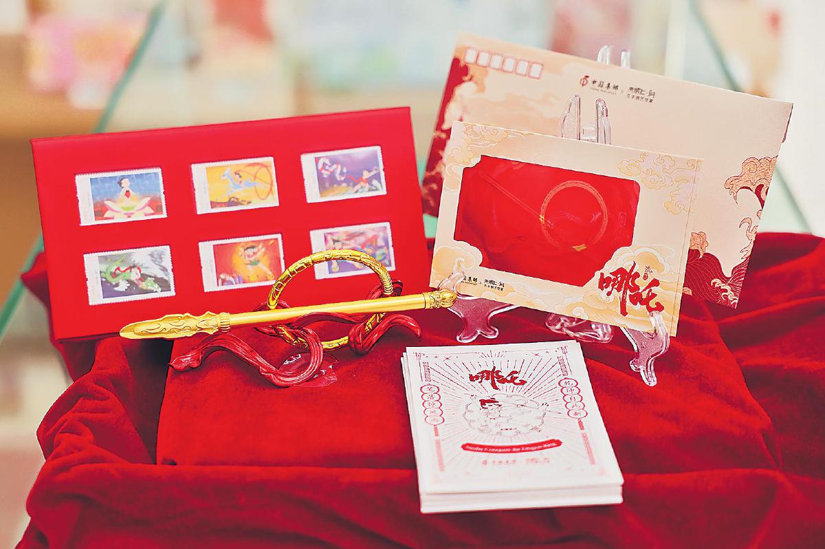 今年春節(jié)期間上映的電影《哪吒2》不僅成為電影市場的“票房霸主”,它的火爆效應(yīng)也從銀幕延伸至線下消費市場?!澳倪浮盜P授權(quán)的周邊產(chǎn)品,如玩偶手辦、文創(chuàng)等衍生品也持續(xù)熱銷。杭州市分公司敏銳地抓住這一熱點,以中國郵政在2021年發(fā)行的《動畫——哪吒鬧?!诽胤N郵票為媒介進(jìn)行合作,融合非遺銅雕藝術(shù)與郵政傳統(tǒng)票、封、片、戳四大元素,創(chuàng)新打造文創(chuàng)產(chǎn)品,在短短十天內(nèi)便完成了產(chǎn)品創(chuàng)意、設(shè)計和開發(fā)。
