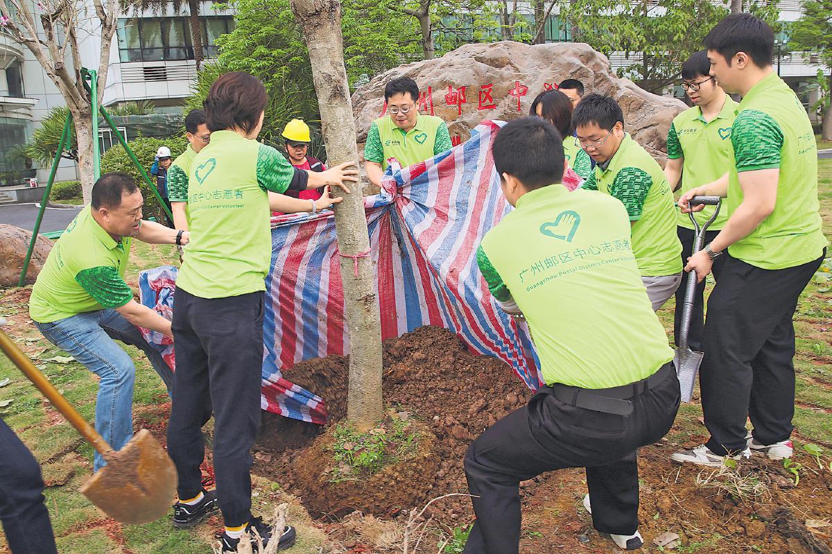 3月12日是第47個全民義務植樹節(jié),廣州郵區(qū)中心開展了義務植樹活動?;顒蝇F(xiàn)場,志愿者們熱情高漲,揮鍬鏟土、摘葉剪枝、扶樹培土、提桶澆水,大家團結(jié)協(xié)作、干勁十足?!蹶愒病£惥w民 攝影報道
