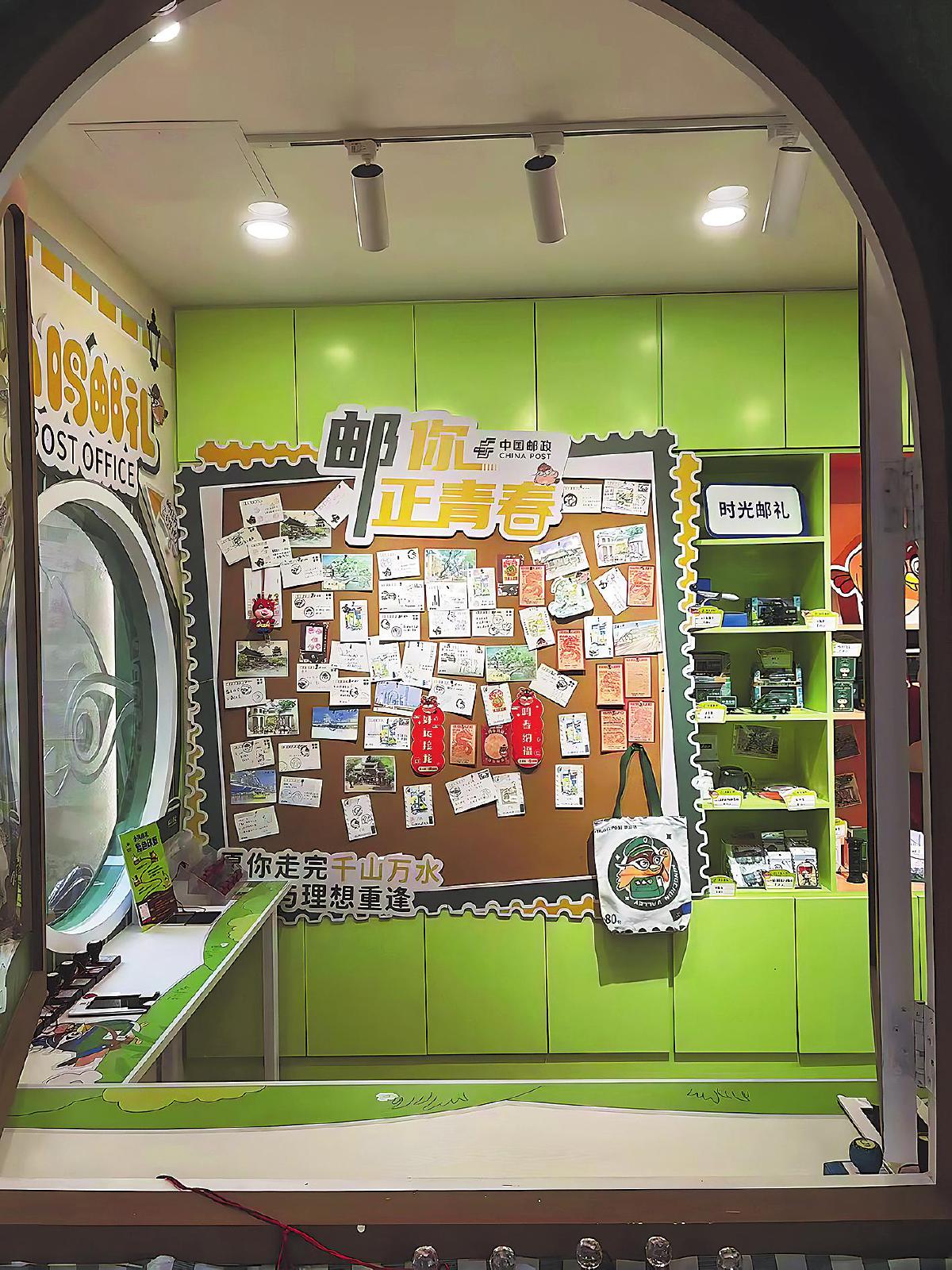 特色郵品是小鳴郵禮郵局的一大亮點。在互動體驗活動區(qū)、蓋章區(qū)擺放著多款精心設(shè)計的印章,每一款都獨具匠心。游客紛紛在明信片或紀念冊蓋上特色印章,留下獨一無二的旅行印記。明信片墻上,滿是游客寫下的春日祝福與旅行感悟,構(gòu)成了一道溫暖而獨特的人文風(fēng)景線。游客小趙在明信片上寫下:“白云山的春天,美得像一幅畫。小鳴郵禮郵局,讓我感受到了郵政文化的魅力和廣州的浪漫?!贝送?,郵局緊跟“集戳文化”熱潮,不定期舉辦集戳活動,賦予游客深度的場景消費體驗和互動儀式感。游客在活動中交流分享,仿佛找到了一種新的旅行樂趣。