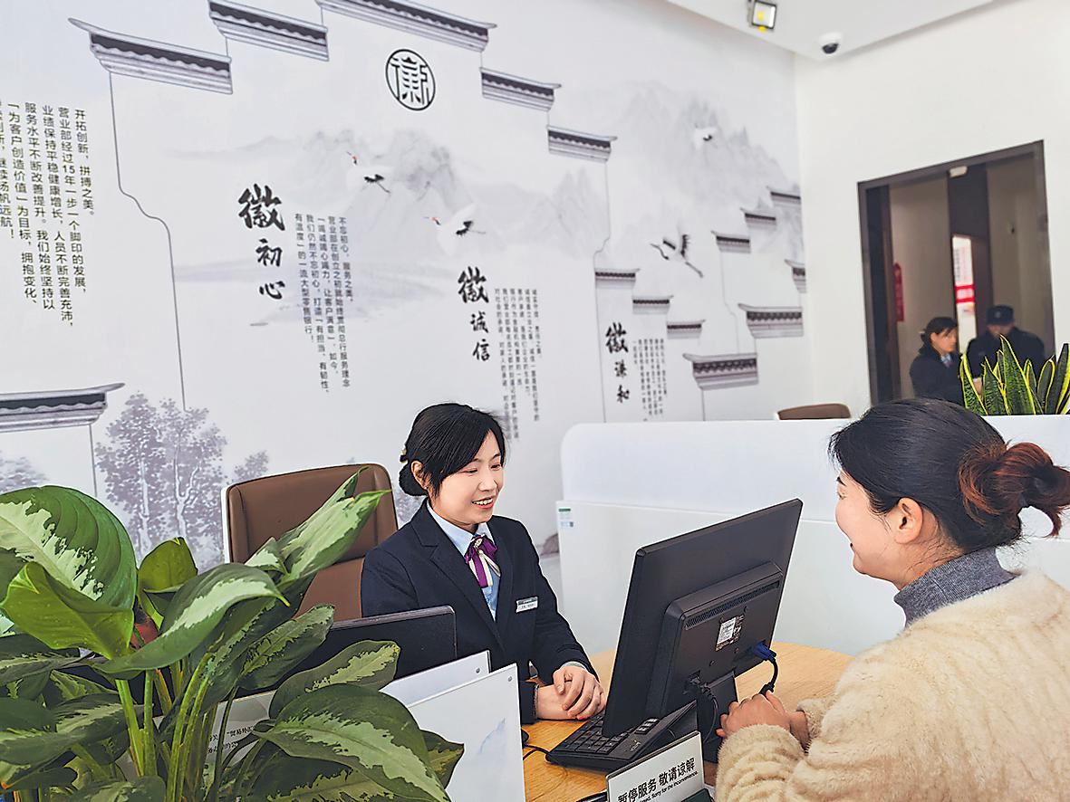 走進(jìn)網(wǎng)點(diǎn),滿目皆景。磚石土木搭建起金融服務(wù)的框架,徽派元素的點(diǎn)綴賦予其獨(dú)特的魅力與韻味。以徽州建筑為設(shè)計靈感的文化幕墻,讓每一位到訪者都身臨其境地體會到“一蓑煙雨夢徽州,青磚黛瓦馬頭墻”的美景?!盃I業(yè)部成立于2008年。2023年,我們結(jié)合‘徽文化’特色對網(wǎng)點(diǎn)進(jìn)行了全面裝修改造?!秉S山市分行營業(yè)部負(fù)責(zé)人朱震星介紹,在“徽文化”的熏陶下,黃山市分行營業(yè)部充分融入了徽派建筑的風(fēng)格、徽商文化的精神。