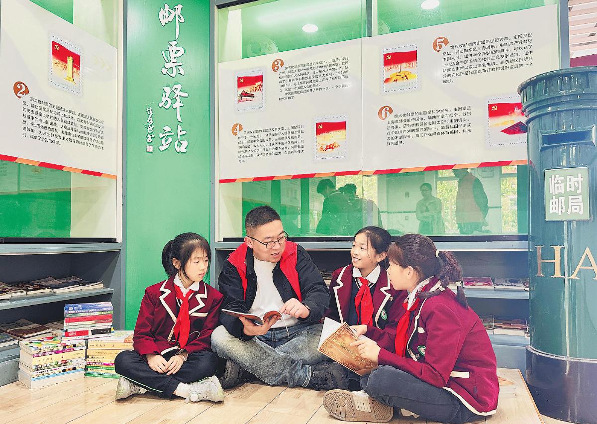 4月22日,江蘇省海安市郵政分公司走進(jìn)城南實(shí)驗(yàn)小學(xué)“郵票驛站”,開展全民閱讀圖書校園巡展活動(dòng)?;顒?dòng)現(xiàn)場(chǎng),同學(xué)們與郵政志愿者共讀集郵圖書,學(xué)習(xí)郵票知識(shí)。 □韋雅琴 攝影報(bào)道