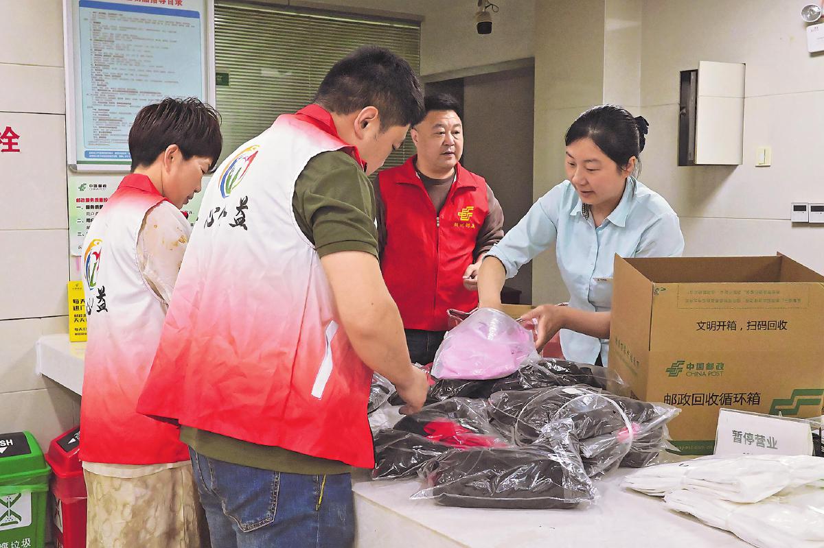 4月23日上午,在浙江省湖州市吳興區(qū)郵政分公司紅旗路營業(yè)網(wǎng)點,郵政工作人員將湖州一心公益服務(wù)中心送來的350余件愛心衣物裝入統(tǒng)一規(guī)格的郵政紙箱中,寄往四川汶川。從攬收、打包到發(fā)運,郵政全環(huán)節(jié)“護(hù)航”這批公益包裹,為汶川受助學(xué)生送去湖州市民的一份“牽掛”。