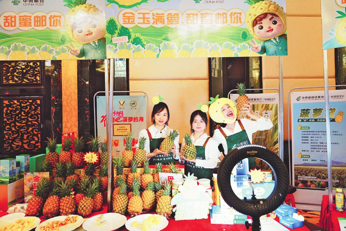 4月10日,湛江市分公司聯(lián)合徐聞縣政府、湛江市農(nóng)業(yè)農(nóng)村局、國(guó)家金融監(jiān)督管理總局湛江監(jiān)管分局、湛江市郵政管理局等單位,在徐聞舉辦了以“紅土育菠蘿,產(chǎn)業(yè)促振興”為主題的2025徐聞菠蘿(鳳梨)推介會(huì)。徐聞縣分公司與重慶果批市場(chǎng)、新疆維吾爾自治區(qū)郵政分公司、新疆紅星農(nóng)場(chǎng)等簽訂了采購(gòu)意向書,采購(gòu)金額達(dá)500萬(wàn)元。