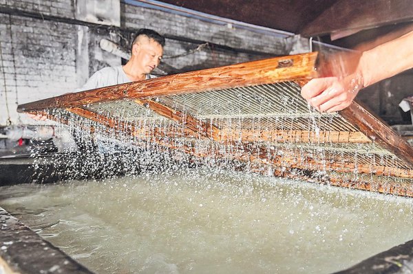 在機(jī)械化、標(biāo)準(zhǔn)化生產(chǎn)的沖擊下,堅(jiān)持手工古法技藝制作并不容易,但曹建勤從未動搖。他說:“正是因?yàn)楣欧妓嚨膰?yán)苛要求,宣紙才具備了易于保存、不會褪色等特點(diǎn),有著‘國之瑰寶’‘紙壽千年’之譽(yù)。”這份堅(jiān)守,也續(xù)寫出新的故事。