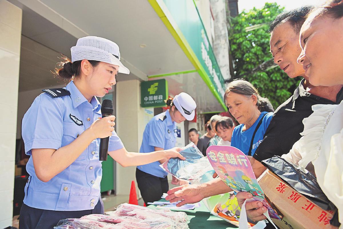 “橫過道路先觀察,一停二看三通過?!鼻宕囗懥恋慕煌ò踩珡V播在廣西壯族自治區(qū)南寧市青秀區(qū)南陽鎮(zhèn)回蕩。7月29日,南寧市郵政分公司與公安局交警支隊聯(lián)合開展“警郵聯(lián)動 ‘大喇叭’進(jìn)農(nóng)村”交通安全主題宣傳活動。