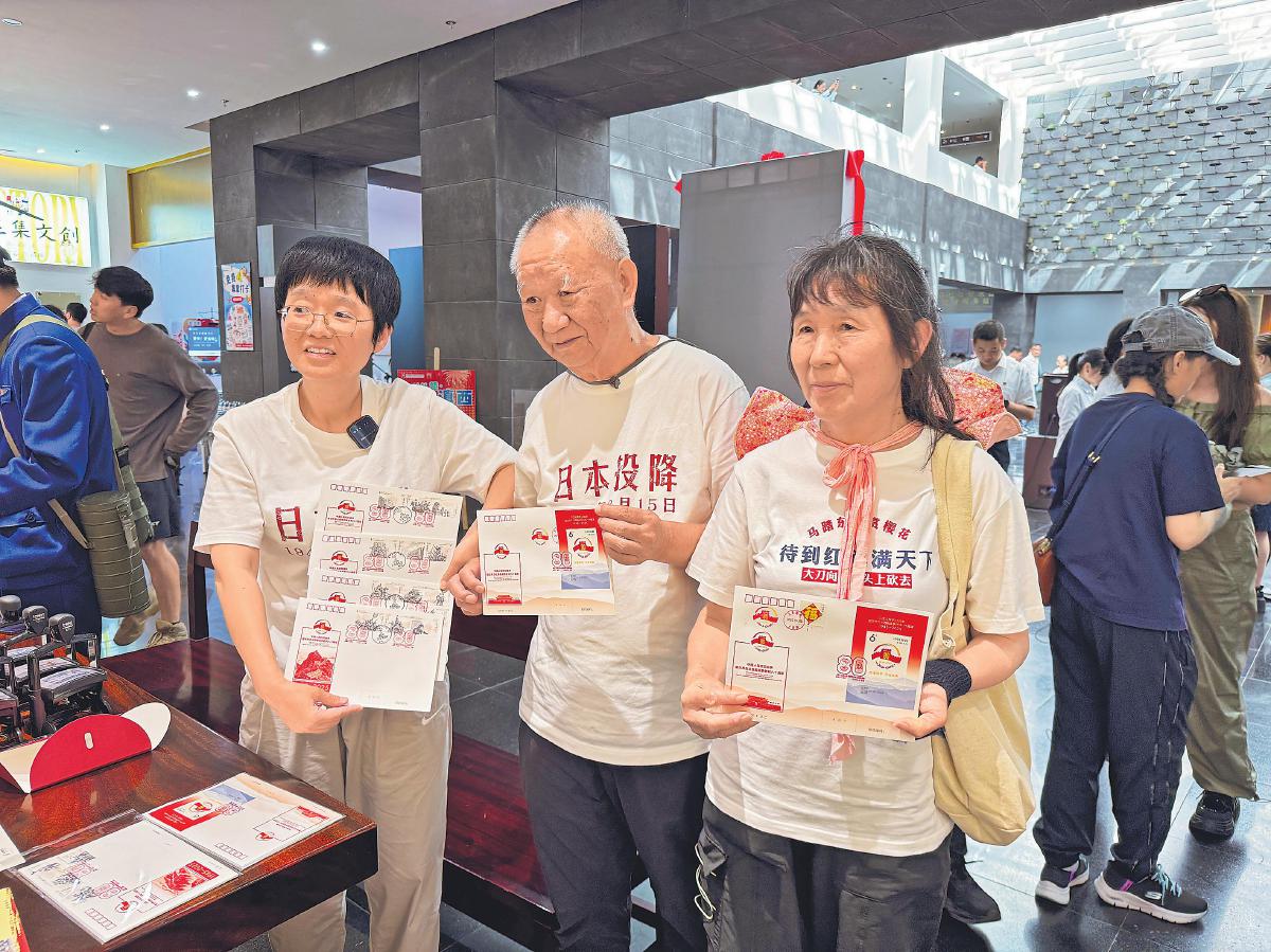 民族記憶,方寸傳承。9月3日,《中國人民抗日戰(zhàn)爭暨世界反法西斯戰(zhàn)爭勝利八十周年》(以下簡稱“抗戰(zhàn)勝利80周年”)紀念郵票在全國發(fā)行。各地民眾和集郵愛好者涌進郵政網(wǎng)點,或迫不及待地選購郵票郵品,或?qū)iT加蓋特殊郵戳,或認真參觀專題郵展,銘記難忘歷史,致敬抗日英烈,追尋紅色地標,賡續(xù)精神血脈。