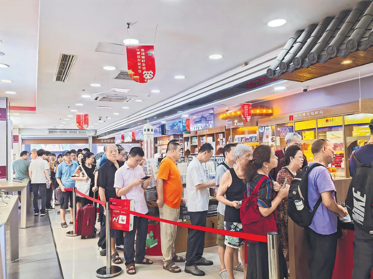 抗戰(zhàn)勝利80周年紀念郵票發(fā)行當日,重慶市解放碑主題郵局排起了長隊?!跷很啊z影報道