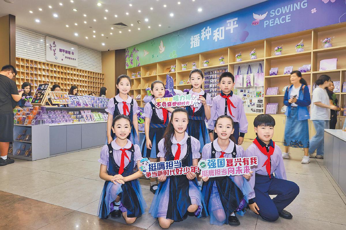 9月3日下午,江蘇省郵政分公司聯(lián)合侵華日軍南京大屠殺遇難同胞紀念館舉辦抗戰(zhàn)勝利80周年紀念郵票發(fā)行儀式。圖為在活動現(xiàn)場表演節(jié)目的學生代表來到和平郵局打卡留念?!醢貫I豐 攝影報道