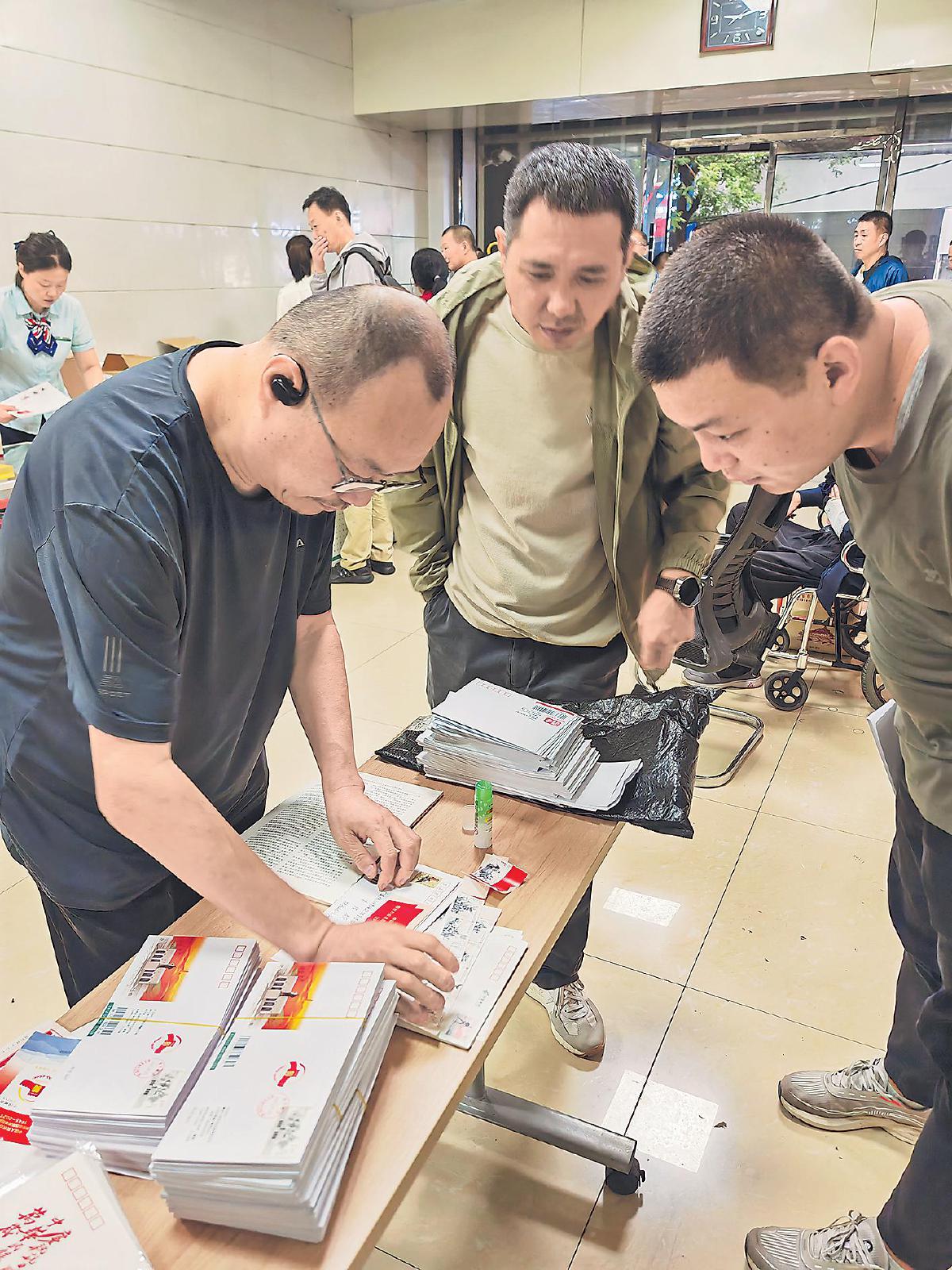 在陜西省延安市寶塔區(qū)中心街郵政支局,眾多集郵愛好者紛至沓來,挑選抗戰(zhàn)勝利80周年相關(guān)郵品。延安市郵政分公司工作人員做好現(xiàn)場服務(wù),確保發(fā)行工作順利開展。□劉建華 攝影報道