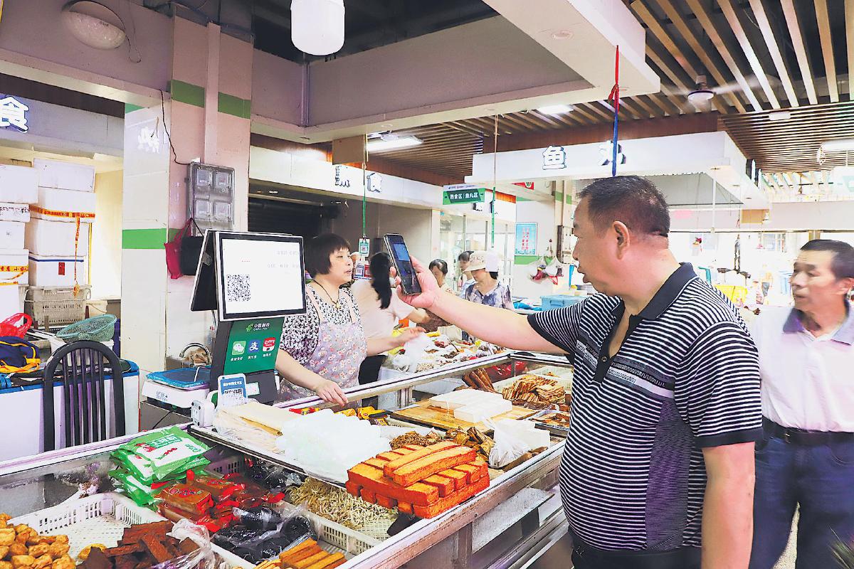 居民在易賴街AI智慧農(nóng)貿(mào)市場用手機支付?!趵顭o我 郭育琳 攝