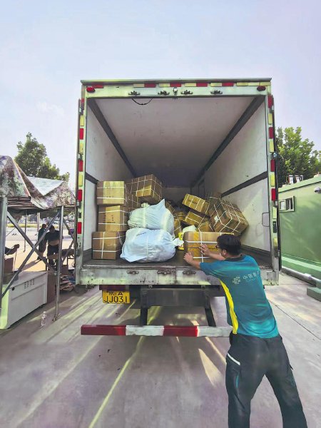 在郵件投遞和收寄環(huán)節(jié),北京郵政嚴格執(zhí)行工作規(guī)范。這是工作人員熟練地將包裹裝上郵車。