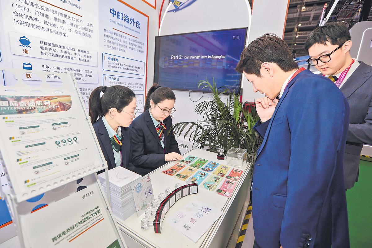 11月5日—10日,第八屆中國國際進口博覽會(以下簡稱“進博會”)在上海舉行。本屆進博會有155個國家、地區(qū)和國際組織參與,4108家境外企業(yè)參展,規(guī)模再創(chuàng)新高。上海市郵政分公司特為本屆進博會啟用并發(fā)行了《第八屆中國國際進口博覽會》YFM118E型郵資機戳和紀念封各1枚,受到廣大集郵愛好者和參展觀眾的歡迎。同時,中國郵政EMS連續(xù)第八年受邀參展,展示了其全球寄遞網絡、境外倉配矩陣等六大板塊成果,呈現(xiàn)郵政從“郵商并舉”向“郵商貨倉并進”的轉型路徑,為跨境貿易提供全鏈條解決方案。圖為觀眾被EMS展位上的特色明信片所吸引。
