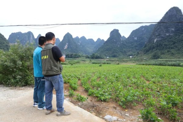 黃忠財(cái)在桑葉種植基地協(xié)助工作人員操作無人機(jī)升空