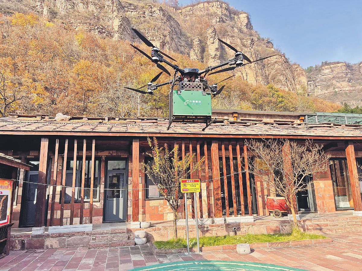 郵政無人機載滿郵件從高家臺村起飛。