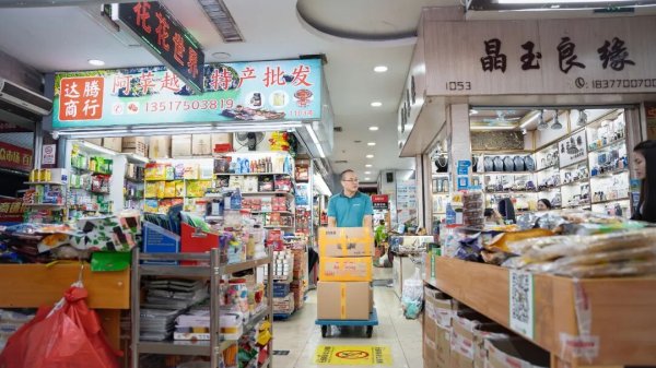 冒著雨,穿過濕漉漉的小巷,熱鬧的萬眾國際批發(fā)市場出現(xiàn)在眼前。沿街商鋪里,郵政的綠色身影隨處可見——有的商戶正在電子面單打印機前熟練操作,有的則在和投遞員確認當天的發(fā)貨安排。在邱女士的店鋪,她一邊整理貨品一邊笑著說:“和郵政合作16年啦,從手寫單子到機器打單,越來越方便。他們有時看我忙,還主動幫忙打包……十幾年沒換過,就因為放心?!?/p>