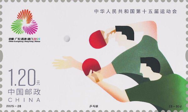 第十五屆全運(yùn)會(huì)是粵港澳三地承辦的我國(guó)規(guī)模最大、水平最高、影響最廣的綜合性運(yùn)動(dòng)會(huì),也是香港、澳門首次承辦全國(guó)運(yùn)動(dòng)會(huì)。該套郵票由內(nèi)地、港、澳三地設(shè)計(jì)師韓家英、陳幼堅(jiān)、歐俊軒設(shè)計(jì)。第1枚郵票表現(xiàn)內(nèi)容為花樣游泳,郵票圖案以躍動(dòng)的剪影表現(xiàn)運(yùn)動(dòng)員的優(yōu)雅身姿,力與美相生共舞,以獨(dú)特的視角展現(xiàn)出運(yùn)動(dòng)員在水中的靈動(dòng)瞬間。第2枚郵票表現(xiàn)內(nèi)容為擊劍,郵票圖案以飛動(dòng)的線條表現(xiàn)運(yùn)動(dòng)員迅猛矯健的身姿,剛與柔交織碰撞,以極簡(jiǎn)的構(gòu)圖展現(xiàn)出運(yùn)動(dòng)員激烈的對(duì)抗場(chǎng)景。第3枚郵票表現(xiàn)內(nèi)容為乒乓球,郵票圖案以鮮明簡(jiǎn)練的色塊表現(xiàn)運(yùn)動(dòng)員蓄勢(shì)待發(fā)的專注之姿,強(qiáng)與韌相融并濟(jì),以幾何化、概括化的現(xiàn)代極簡(jiǎn)插畫造型,展現(xiàn)出運(yùn)動(dòng)員發(fā)球瞬間的氣勢(shì)和張力,營(yíng)造出緊張的比賽氛圍。