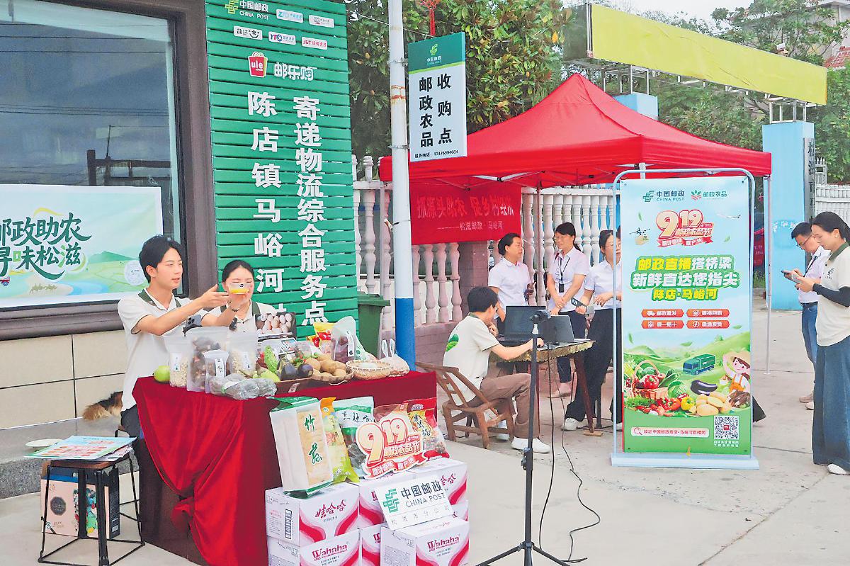 松滋郵政進(jìn)村駐點(diǎn)開(kāi)展直播,從源頭推介農(nóng)產(chǎn)品。
