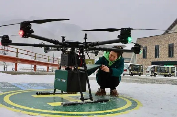 “郵件裝載完畢,已完成起飛前檢查,可以正常起飛!” 隨著指令下達,這架搭載著快遞與報刊的“空中快遞員”騰空而起,沿云控3D航線向7公里外的冬奧村疾馳而去。14分鐘后,無人機精準降落,在皚皚白雪中為山區(qū)打通了高效便捷的“空中郵路”。