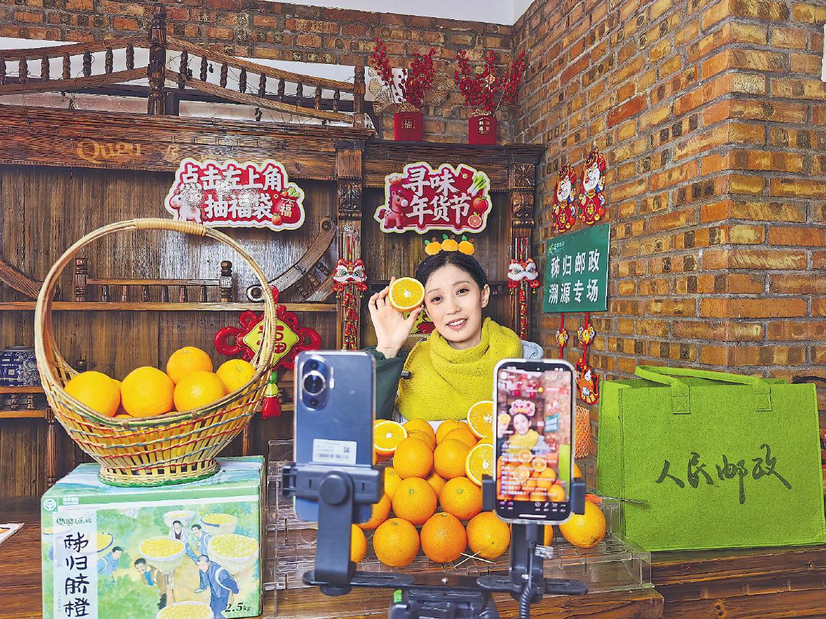 宜昌市郵政分公司圍繞秭歸臍橙這一全國級郵政農(nóng)產(chǎn)品基地,以“政企聯(lián)動、網(wǎng)點引流、省際互換、‘村播’直達”為抓手,將臍橙作為主推產(chǎn)品,為消費者送去新鮮香甜的“郵味”年貨。