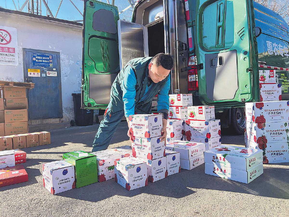 清晨5點半,京北田野尚未完全蘇醒,位于北京市昌平區(qū)的草莓大棚里已是人影綽綽。手電筒的光束劃過翠綠的葉壟,照出一顆顆鮮紅欲滴的果實,“紅顏”草莓正迎來一天中最關(guān)鍵的采摘時刻。果農(nóng)小心地將草莓放入墊著軟襯的籃中,攬收員左蒸蒸快步上前,接過還沾著晨露的果籃,驗視、稱重、錄入、封裝,動作一氣呵成。“咱們的專車等著呢。今天下午,這批‘紅顏’草莓就能出現(xiàn)在城里的餐桌上了。”幾分鐘后,這批嬌嫩的果實便穩(wěn)穩(wěn)地裝入郵車,開啟了一場關(guān)于速度與新鮮的奔赴。