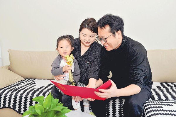 “我認(rèn)識(shí)這個(gè)圖案,是1。爸爸,你真棒!”兩歲的女兒偎在張通懷里,指著獎(jiǎng)杯開(kāi)心地說(shuō)。