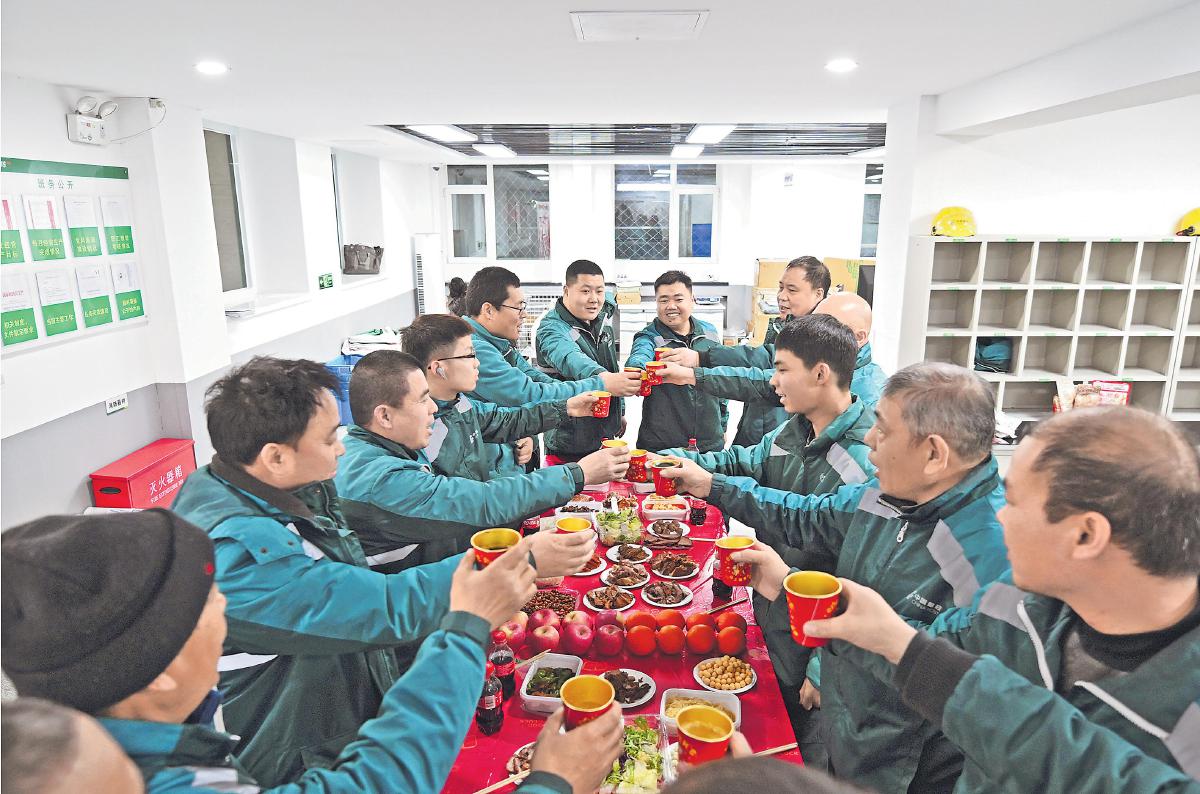 杯中倒?jié)M甘甜飲料,各色熟食擺盤上桌,十幾名攬投員圍席而坐——晚上7點,一場溫暖的團聚如期而至。“很高興今年又能和大家一起堅守崗位,感謝你們舍小家、顧大家,保障城市用郵,提前給大家拜年!”隨著王天來的深情祝福,大家舉杯共慶新春。歡聲笑語伴著美食的香味很快在空氣中彌漫開來,滿是家的味道。