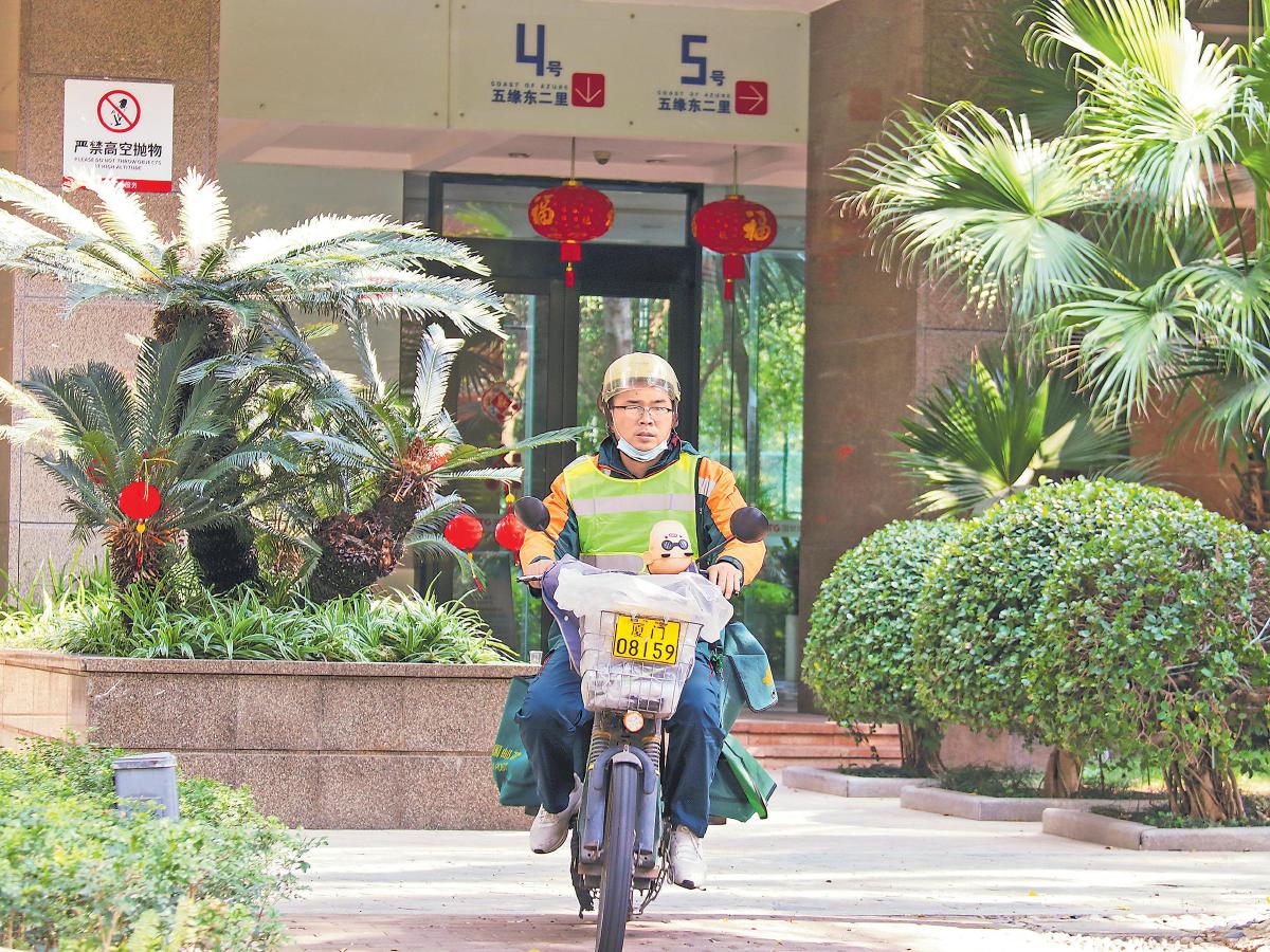 蔡加杰認為,春節(jié)期間雖然投遞量減少,但“服務質量不能打折扣”,特別對于普遍服務而言,有郵件一定要當頻投;掛號、普包等郵件如往常一樣上門前電話聯(lián)系,根據(jù)客戶需要及時投遞。優(yōu)質的服務被客戶看在眼里,一小區(qū)物業(yè)工作人員呂輝萍主動向記者夸起了郵政投遞員:“又及時、服務態(tài)度又好,大過年的還在堅守,我們好多業(yè)主都為他們點贊呢!”