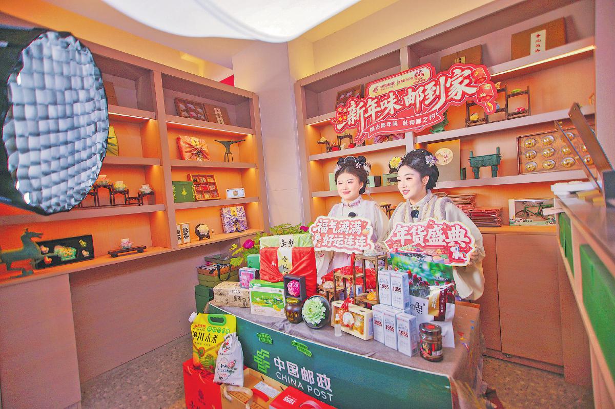 洛陽郵政直播團(tuán)隊(duì)在龍門主題郵局開展“新年味 郵到家”直播活動(dòng)。