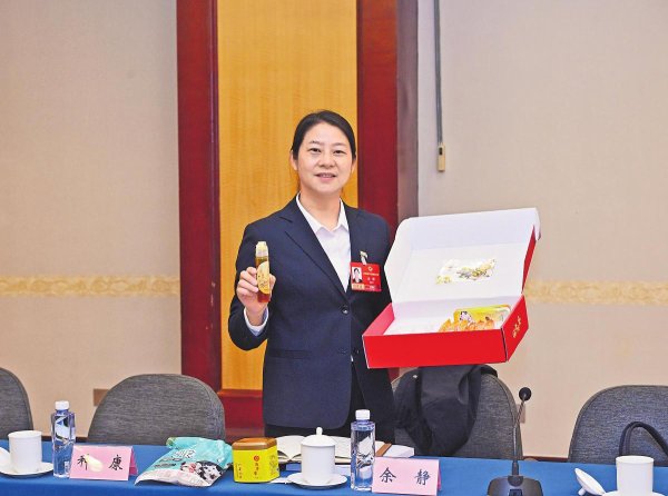 “歡迎大家來大灣!”全國兩會期間,全國政協(xié)委員、安徽省金寨縣大灣村黨總支第一書記余靜在小組會上舉起一份“甜蜜四件套”禮盒,向全國發(fā)出邀請。蜂蜜、紅薯干、玉木耳、金絲皇菊,外加一枚“幸福邀請函”明信片——這份裝滿大別山味道的伴手禮,迅速出圈。