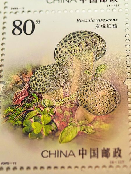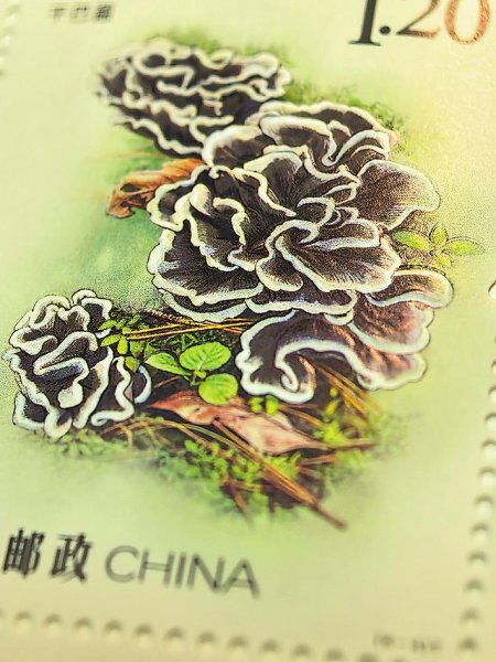 2025年發(fā)行的《食用菌(二)》郵票,首次使用“蘑菇”形異形齒孔,讓一只只可愛的小蘑菇躍然紙上。本套郵票采用“高精度五色膠印+香味油墨+三維起凸”工藝,高精度膠印還原了原稿的色彩表達(dá)和顏色層次;香味油墨可通過摩擦郵票畫面激發(fā)出香味,模擬森林自然環(huán)境的氛圍;三維起凸工藝通過對(duì)蘑菇主體、傘帽、菌褶等不同部分進(jìn)行不同的高度起凸,還原新鮮蘑菇的觸感。集郵者能通過觸摸郵票,從視覺、觸覺、嗅覺多維度營(yíng)造沉浸式的感官聯(lián)想,增強(qiáng)郵票的互動(dòng)趣味性。