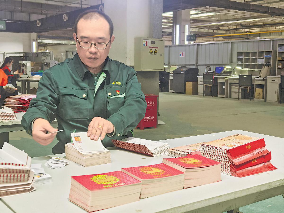在封裝環(huán)節(jié),北京郵政工作人員手工“打包”每一份祝福。