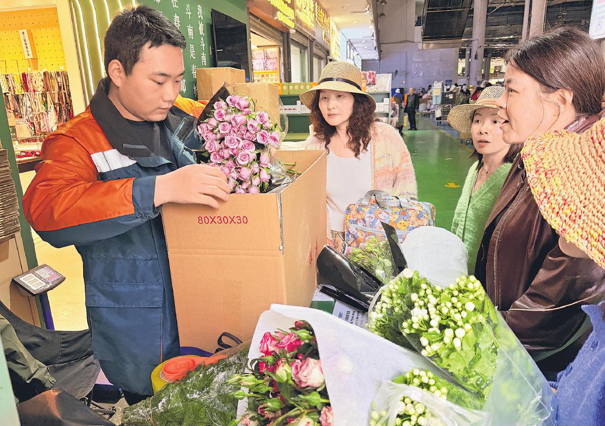 春日的云南昆明斗南花卉市場,鮮切花交易火熱。昆明市郵政分公司在市場設(shè)立收寄服務(wù)點,采用海綿插槽固定花束、底部保水防護等工藝,并在寄遞箱上標注“鮮花”字樣,以便優(yōu)先處理,保障“云花”新鮮送達全國各地。3月以來,昆明郵政在斗南花卉市場日均攬收鮮花郵件五六千件。
