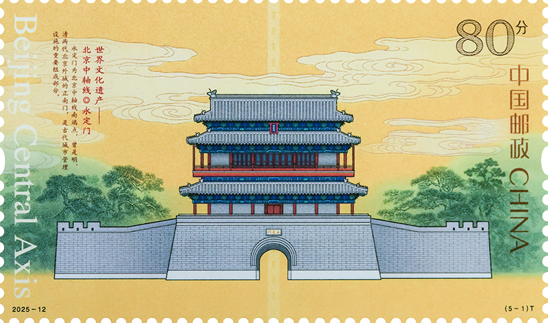 中國(guó)郵政定于2025年7月27日發(fā)行《世界文化遺產(chǎn)——北京中軸線》特種郵票1套5枚。詳情如下: