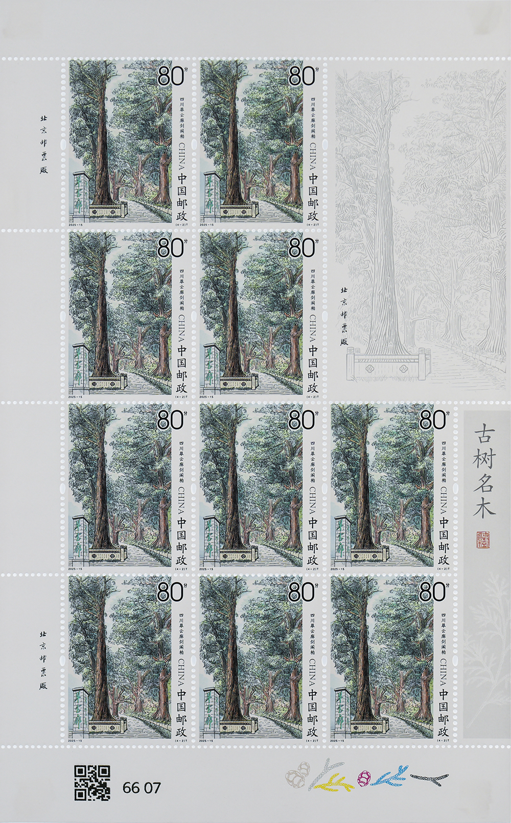 中國(guó)郵政定于2025年8月15日發(fā)行《古樹(shù)名木》特種郵票1套4枚。詳情如下: